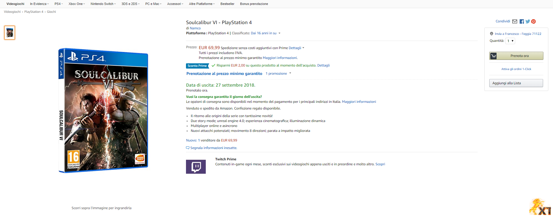 امروز طی شایعه ای که منتشر شده است,سایت فروشگاهی معتبر آمازون از تاریخ انتشار بازی رونمایی کرده است.به گفته سایت Amazon,بازی SoulCalibur VI قرار است در September 27th مصادف مهر, برای PC,Xbox one و PS4 عرضه شود.
