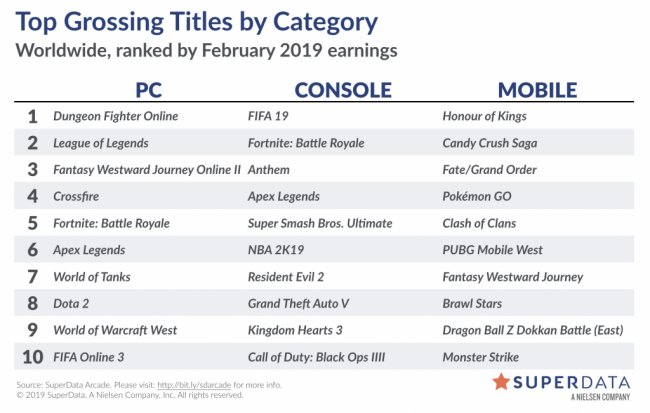 امروز سازمان تحقیقاتی SuperData Arcade طی گزارشی در مورد پرفروشترین و پر درامدترین عنوان های ماه فوریه سال 2019 صحبت کرده است.